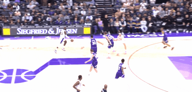 开局不利:第一节末尾,弱侧补位,慢了一拍:防守沟通,移动,也许想补亚历山大?但终究是吃了个2+1。